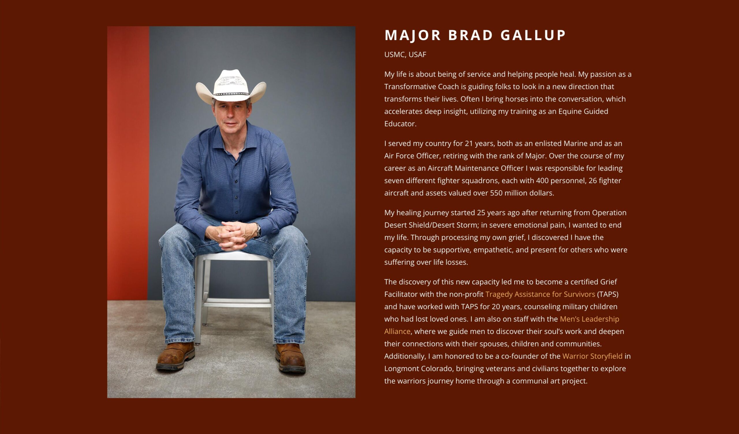 Shortly after we launched his website, Brad landed his dream job running workshops for veterans who struggle with PTSD.