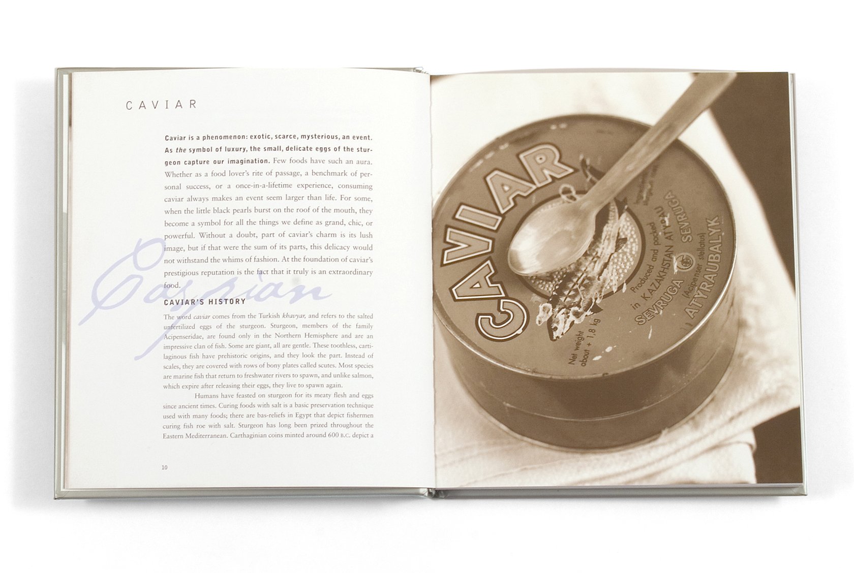 Design and template for coffee table book on caviar, truffles and foie gras.
